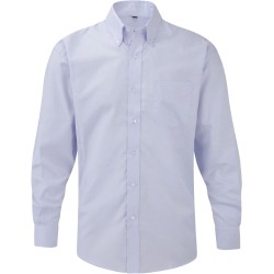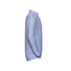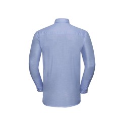 70% coton Oxford / 30% polyester. Véritable facilité d'entretien, repassage minimum. Pointes de col à baleine boutonnées. Empiècement arrière avec 2 plis latéraux. Poche de poitrine sur le côté gauche. Poignets réglables arrondis à 2 boutons et patte capucin à bouton unique.