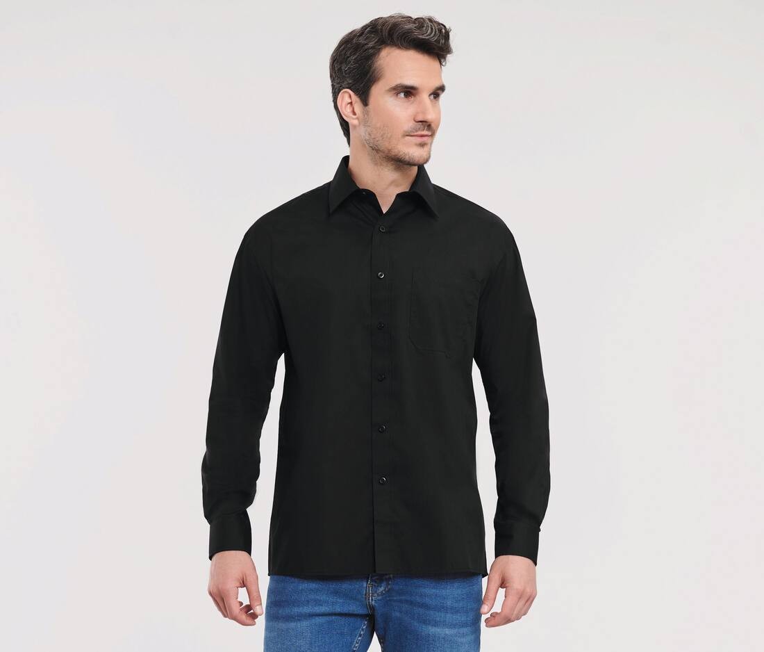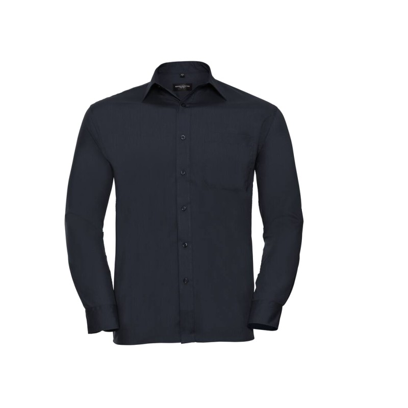 Mélange 65% polyester / 35% coton. Élégante chemise d'entreprise en popeline classique. Véritable facilité d'entretien, repassage minimum. Idéale comme tenue de travail résistante. Bas droit. Empiècement de boutonnage à 7 boutons en coloris assortis à la chemise. Poignets réglables arrondis à 2 boutons et patte capucin à bouton unique. Poche poitrine côté gauche.