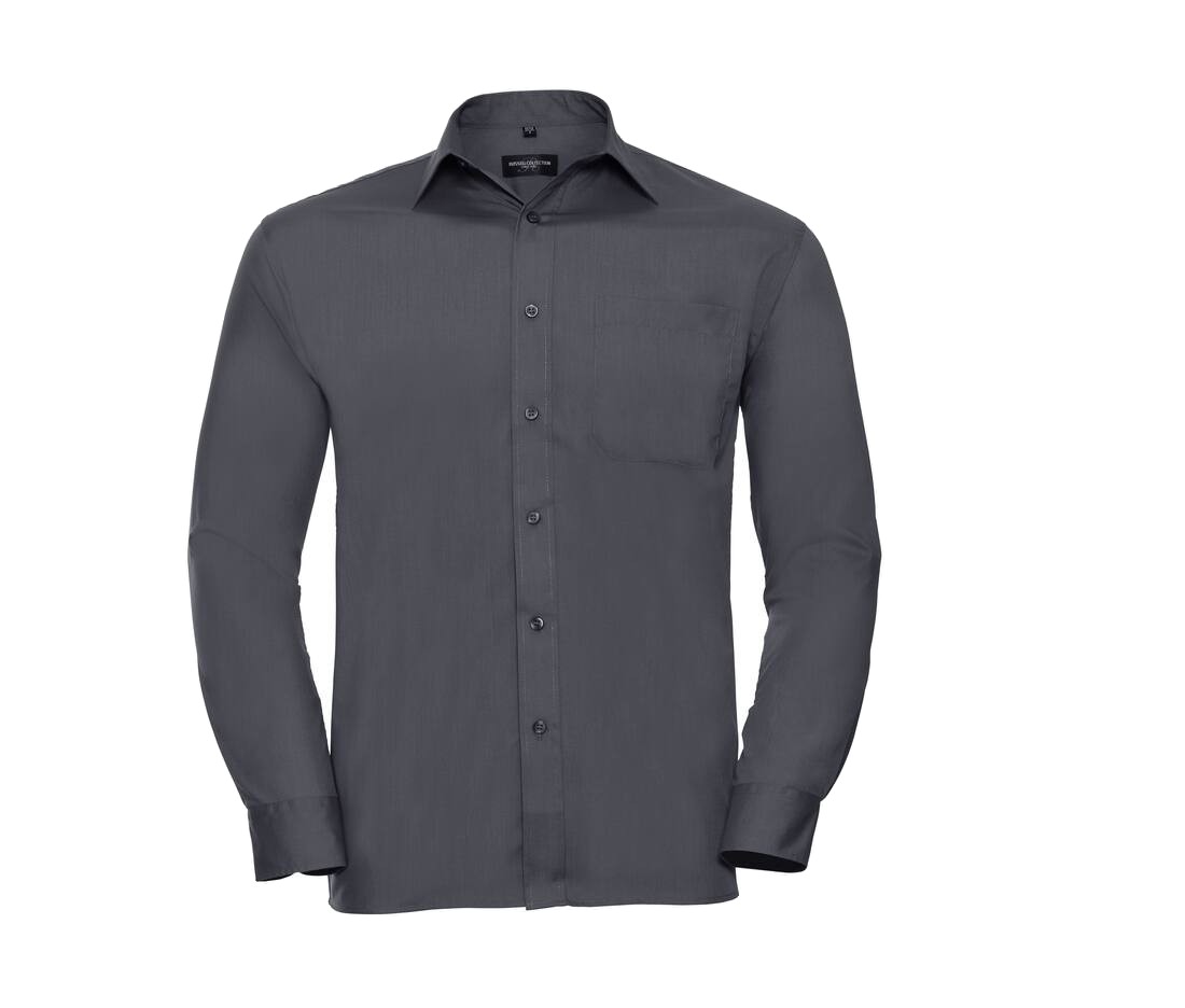 Mélange 65% polyester / 35% coton. Élégante chemise d'entreprise en popeline classique. Véritable facilité d'entretien, repassage minimum. Idéale comme tenue de travail résistante. Bas droit. Empiècement de boutonnage à 7 boutons en coloris assortis à la chemise. Poignets réglables arrondis à 2 boutons et patte capucin à bouton unique. Poche poitrine côté gauche.