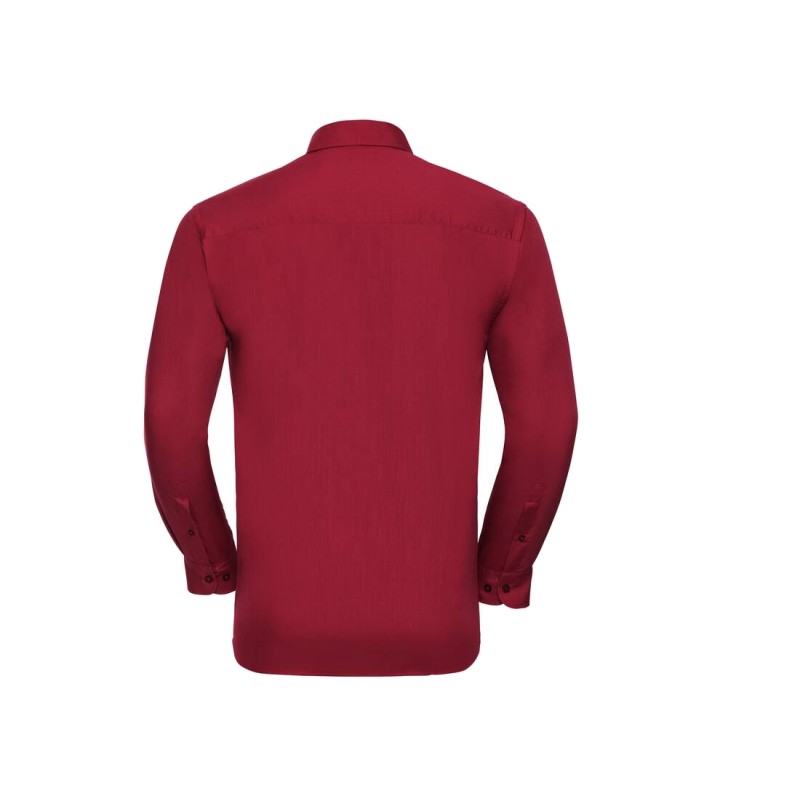 Mélange 65% polyester / 35% coton. Élégante chemise d'entreprise en popeline classique. Véritable facilité d'entretien, repassage minimum. Idéale comme tenue de travail résistante. Bas droit. Empiècement de boutonnage à 7 boutons en coloris assortis à la chemise. Poignets réglables arrondis à 2 boutons et patte capucin à bouton unique. Poche poitrine côté gauche.