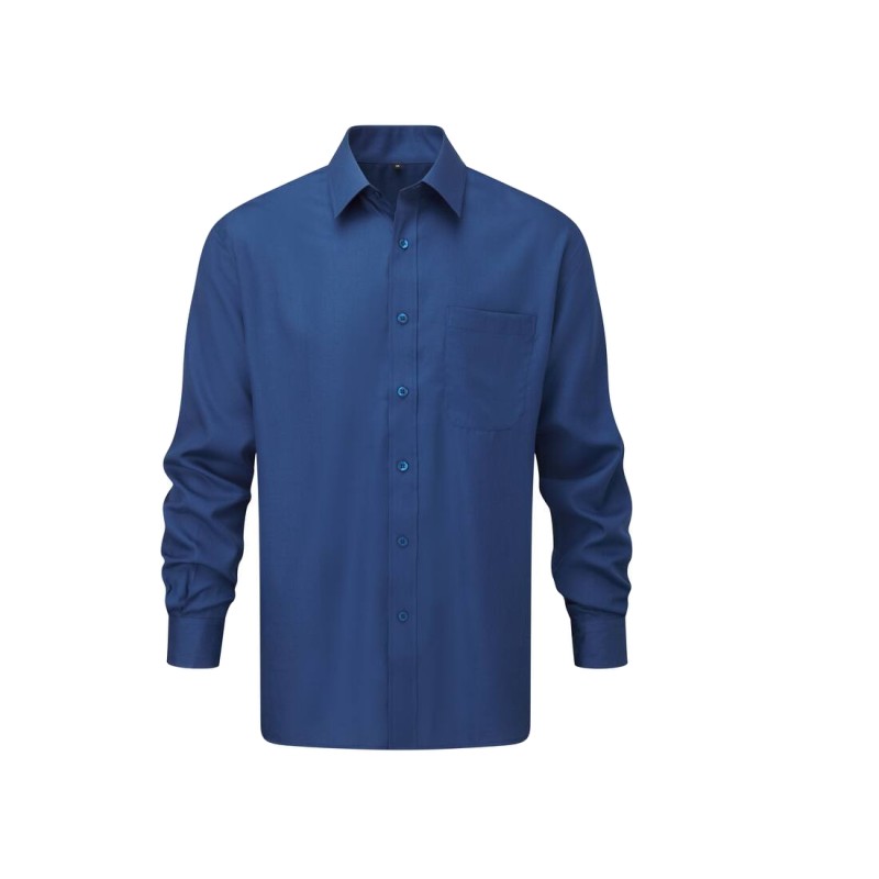 Mélange 65% polyester / 35% coton. Élégante chemise d'entreprise en popeline classique. Véritable facilité d'entretien, repassage minimum. Idéale comme tenue de travail résistante. Bas droit. Empiècement de boutonnage à 7 boutons en coloris assortis à la chemise. Poignets réglables arrondis à 2 boutons et patte capucin à bouton unique. Poche poitrine côté gauche.