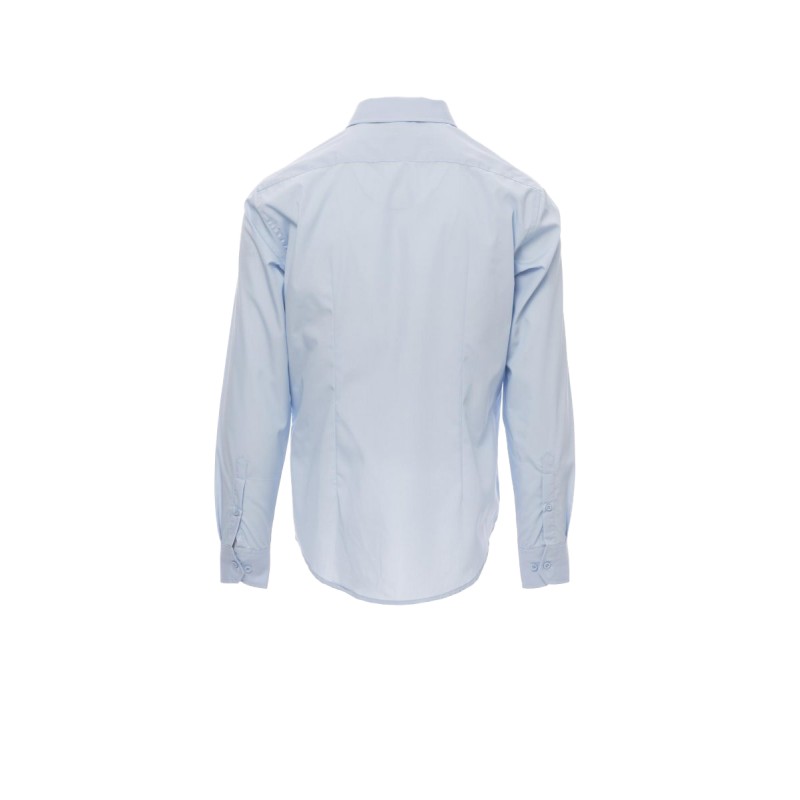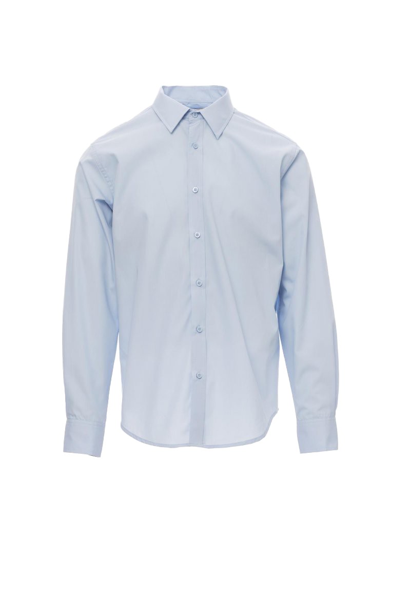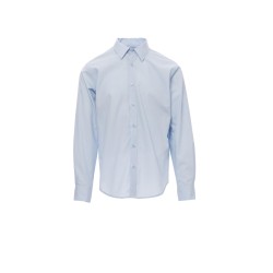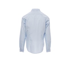 Chemise homme, fil peigné très fin, coupe légèrement cintrée, col italien, poignets profilés avec deux boutons et une boutonnière, patte de boutonnage visible et boutons teinte assortie. Dos : empiècement droit et pinces de reprise à mi-dos. Tissu traité Easy Care.
