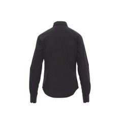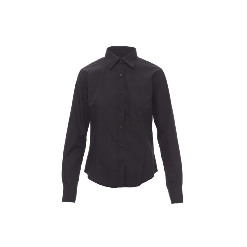 Chemise femme, fil de coton peigné très fin, coupe cintrée, pinces de reprise devant et derrière, col italien, poignets profilés avec deux boutons et une boutonnière, patte de boutonnage visible et boutons teinte assortie. Empiècement droit dans le dos. Tissu traité Easy Care.