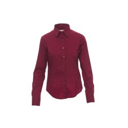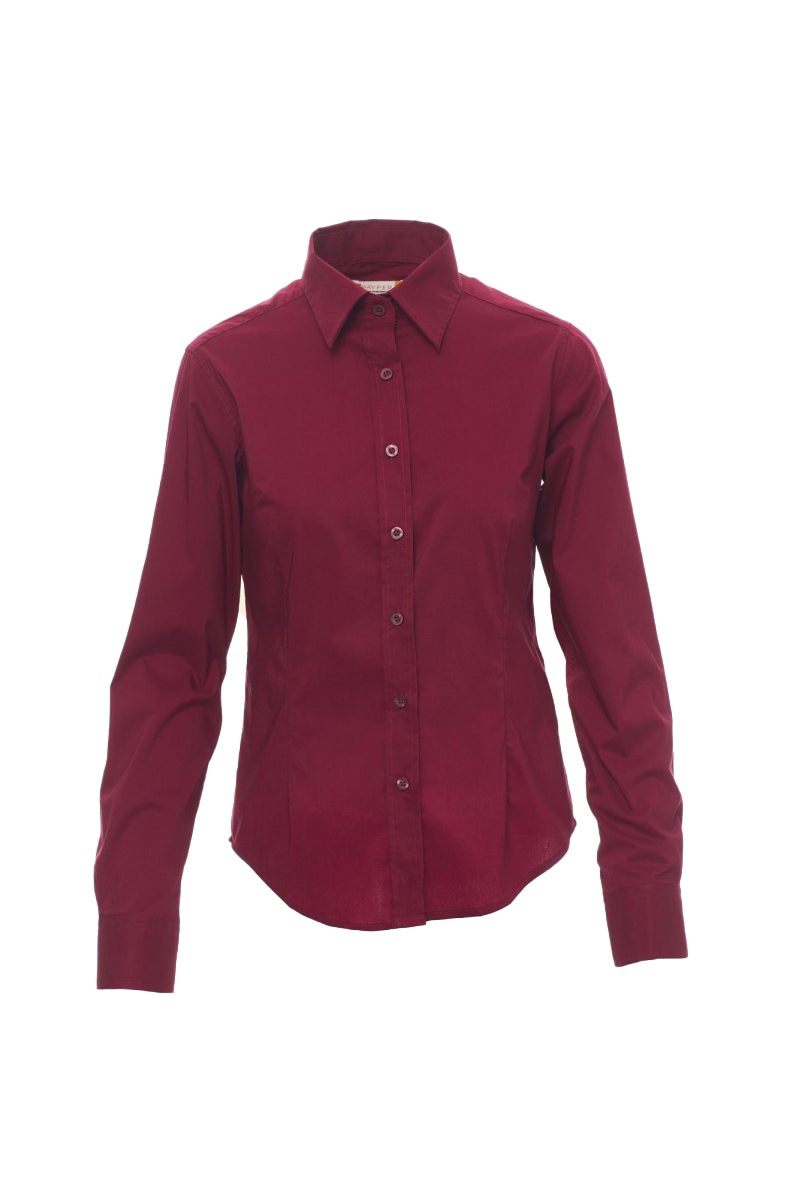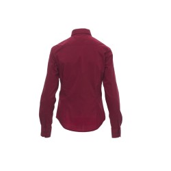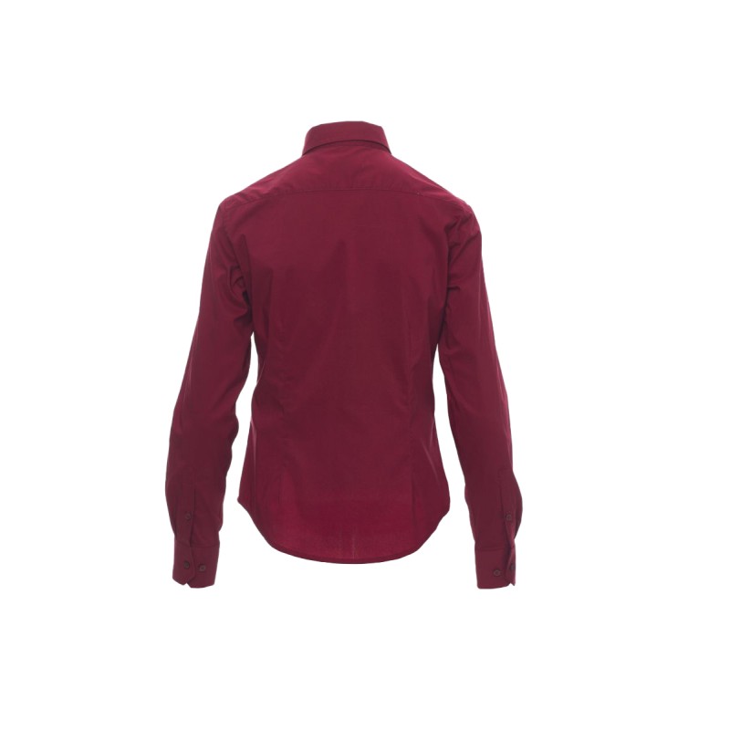 Chemise femme, fil de coton peigné très fin, coupe cintrée, pinces de reprise devant et derrière, col italien, poignets profilés avec deux boutons et une boutonnière, patte de boutonnage visible et boutons teinte assortie. Empiècement droit dans le dos. Tissu traité Easy Care.