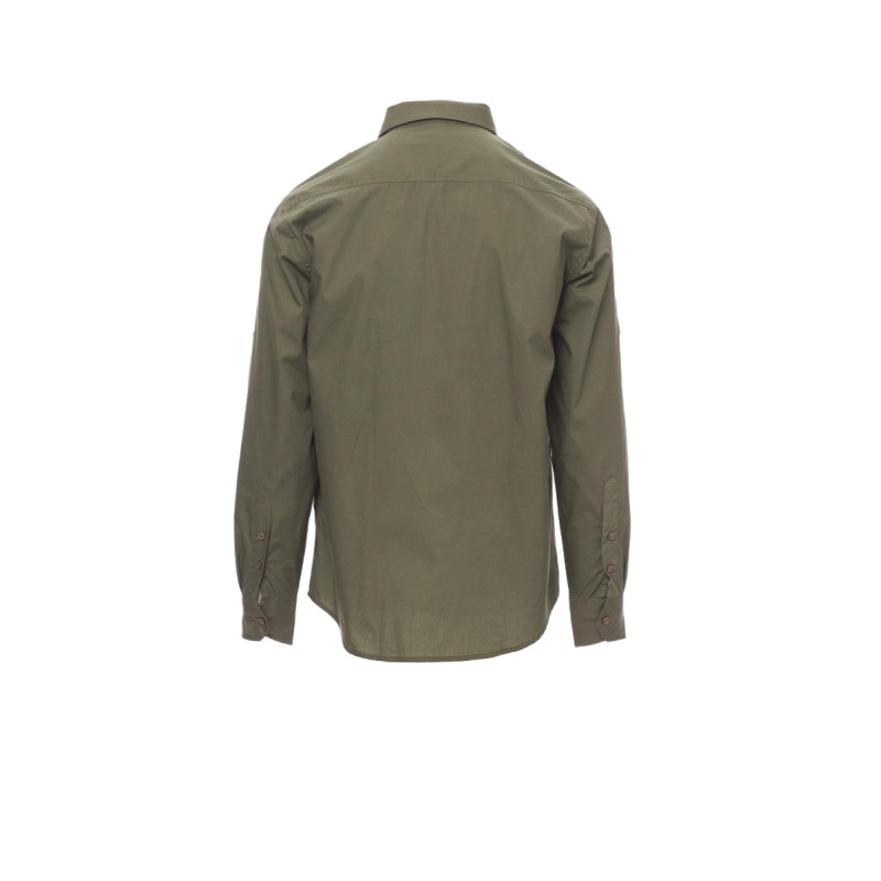 Chemise homme, fil de coton peigné très fin, coupe légèrement cintrée, empiècement droit devant, fermeture par boutons assortis avec boutonnières contrastées, épaulettes, deux poches sur la poitrine avec rabat et porte-stylo . Patte avec bouton sur le bras pour retrousser facilement les manches. La chemise blanche n'a pas de boutonnières contrastées ni d'empiècement devant. Tissu traité Easy Care.