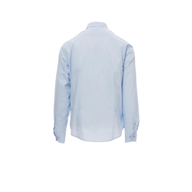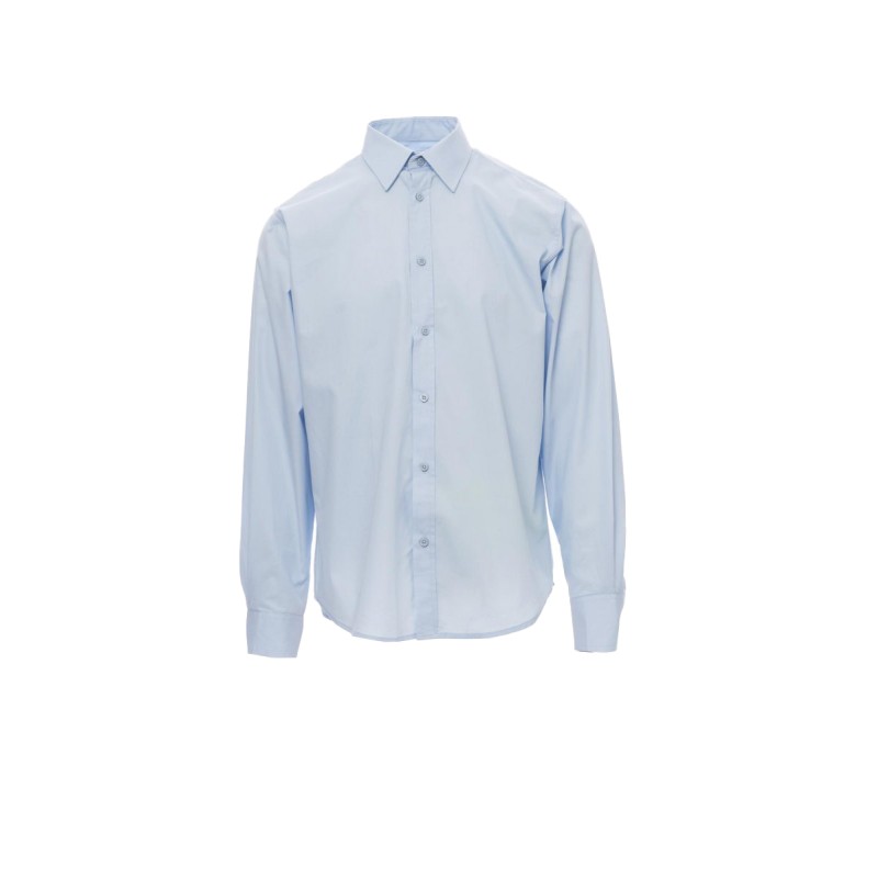 Chemise homme, fil de coton peigné très fin, coupe légèrement cintrée, col italien, poignets profilés avec deux boutons et une boutonnière, patte de boutonnage visible et boutons teinte assortie . Empiècement droit et pinces de reprise dans le dos. Tissu traité Easy Care.
