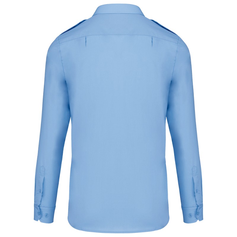 65% polyester / 35% coton. Tissu popeline. Entretien facile (traitement Easy Care). Boutons ton sur ton. 2 poches poitrine à rabat dont une avec emplacement stylo côté coeur. Plis d'aisance au dos. Patte boutonnée sur les épaules pour la pose de galons (galons non fournis). Poignets boutonnés réglables.