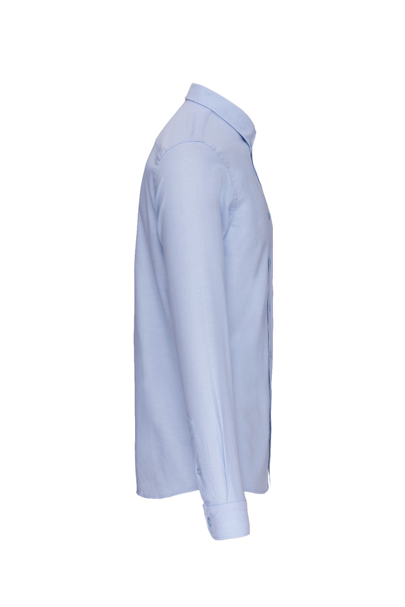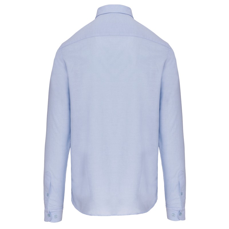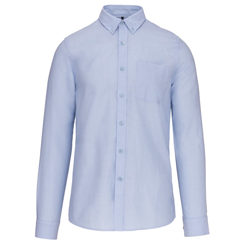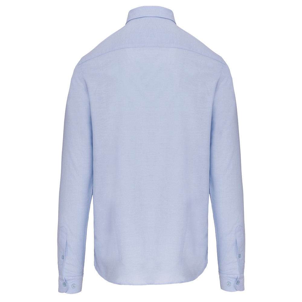 100% coton. Coupe ajustée. Pointe de col boutonnée. Intérieur col et bas de manches avec liseré contrasté. Boutons ton sur ton. Poche poitrine côté gauche à angles arrondis. Empiècement dos double. Poignets réglables à angles arrondis avec patte capucin boutonnée. 2 boutons de rappel. Bas arrondi.