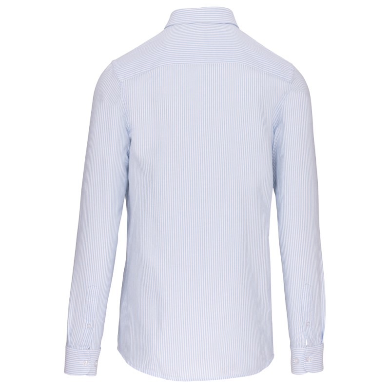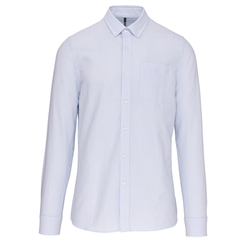100% coton. Coupe ajustée. Pointe de col boutonnée. Intérieur col et bas de manches avec liseré contrasté. Boutons ton sur ton. Poche poitrine côté gauche à angles arrondis. Empiècement dos double. Poignets réglables à angles arrondis avec patte capucin boutonnée. 2 boutons de rappel. Bas arrondi.