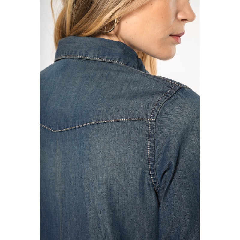 100% coton. Chemise lavée aux enzymes. Coupe cintrée. Boutons pression fantaisie. 2 poches poitrine avec rabat et bouton pression. Empiècements dos et devant. Bas de manches avec poignets et boutons pression. Bas arrondi. Ce produit a subi un traitement spécial et présente un aspect volontairement vieilli. Ce procédé de fabrication implique de légères variations de couleurs d'un produit à l'autre et rend chaque pièce unique.