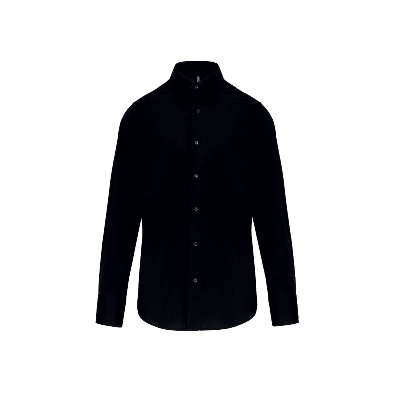 97% coton / 3% élasthanne. Aisance et ajustement idéal de par son côté stretch. Pointe de col baleinée. Boutons ton sur ton. Empiècement dos double. Pinces taille dos. Finition coutures rabattues. Poignet à angles abattus à 2 boutons avec patte de manche capucin boutonnée. 2 boutons de rappel. Bas arrondi.