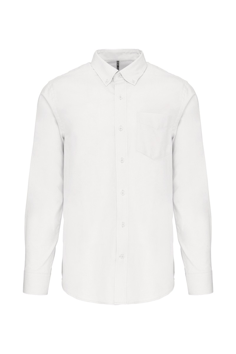 70% coton oxford / 30% polyester. Entretien facile (traitement Easy Care). Pointe de col boutonnée. Boutons ton sur ton. Poche poitrine côté gauche en V. Empiècement dos double avec 2 plis d'aisance. Poignet réglable à angles arrondis avec patte de manche capucin boutonnée. 2 boutons de rappel. Bas arrondi.