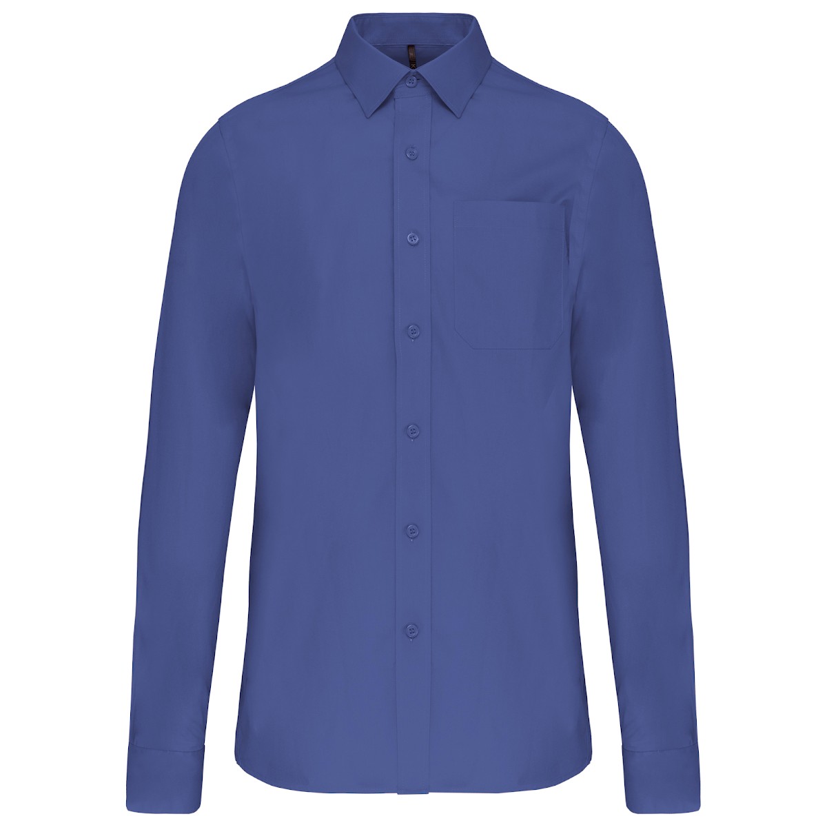 100% coton popeline. Entretien facile (traitement Easy care). Pointe de col baleinée. Boutons ton sur ton. Poche poitrine côté gauche à angles abattus. Empiècement dos double avec 2 plis d'aisance. Finition coutures rabattues. Poignet réglable à angles arrondis avec patte de manche capucin boutonnée. 2 boutons de rappel. Bas arrondi.