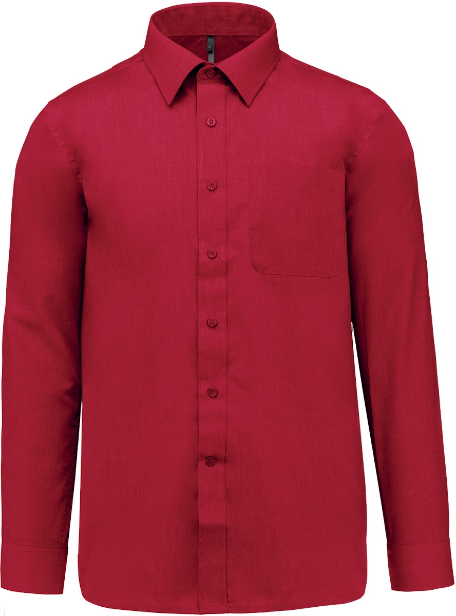 65% polyester / 35% coton. Tissu popeline. Entretien facile. Pointe de col baleinée. Boutons ton sur ton. Poche côté gauche poitrine à angles arrondis. Empiècement dos double. Finition coutures rabattues. Poignet réglable à angles arrondis avec patte de manche capucin boutonnée. 2 boutons de rappel.