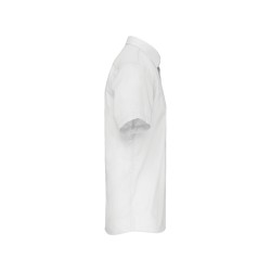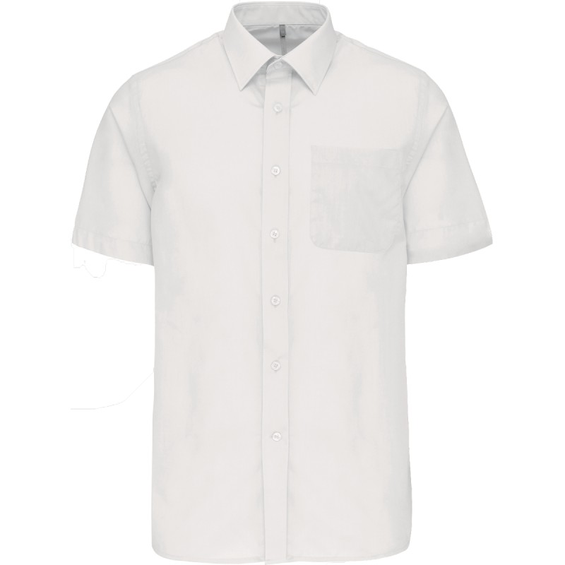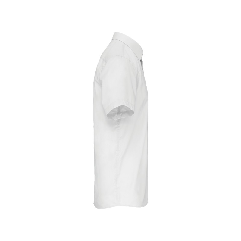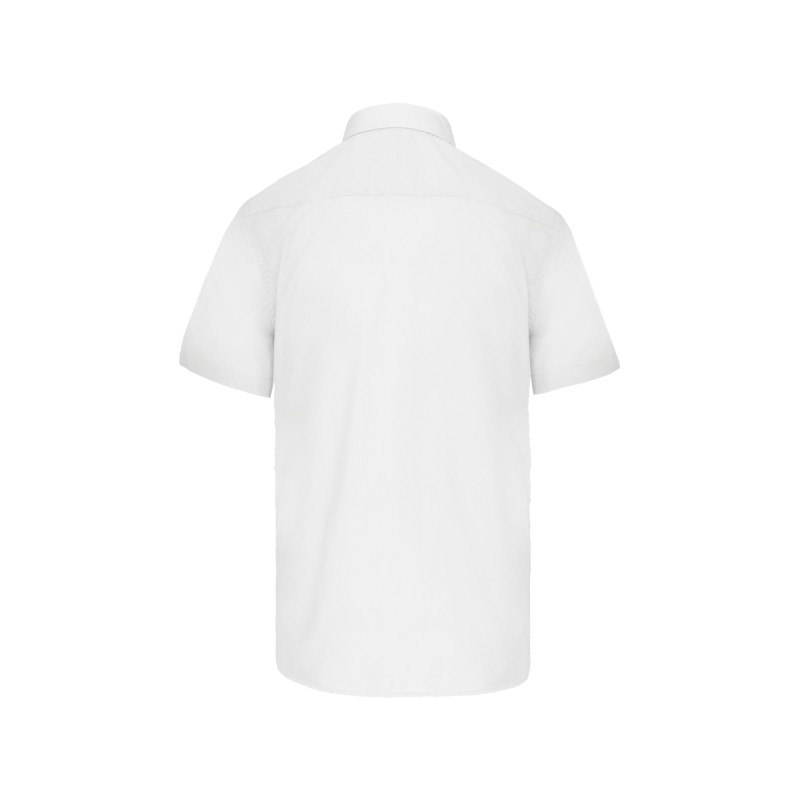 65% polyester / 35% coton. Tissu popeline. Entretien facile. Pointe de col baleinée. Boutons ton sur ton. Poche poitrine côté gauche à angles arrondis. Empiècement dos double. Finition coutures rabattues. Ourlet bas de manche double rempli. Bouton de rappel. Bas arrondi.
