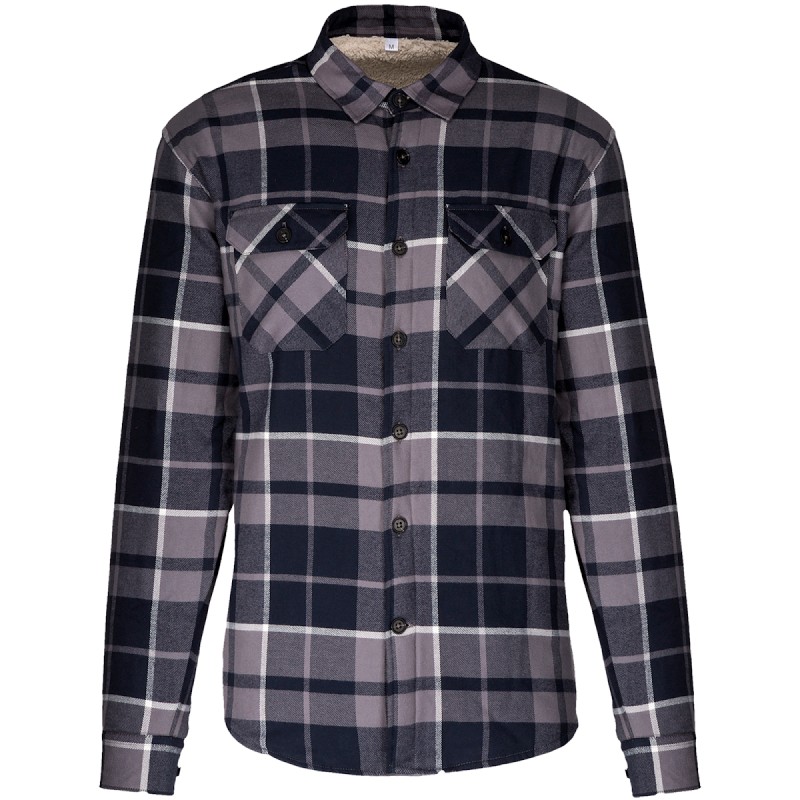 100% coton. Coton flanelle. Doublure corps sherpa 100% polyester. Manches doublées et matelassées 100% polyester taffetas. Surchemise très douce et ultra chaude. 2 poches poitrine avec rabat. Patte de boutonnage classique. Poignets boutonnés réglables. Bas arrondi. Pas d'étiquette de marque au col, uniquement une puce de taille pour faciliter la personnalisation.