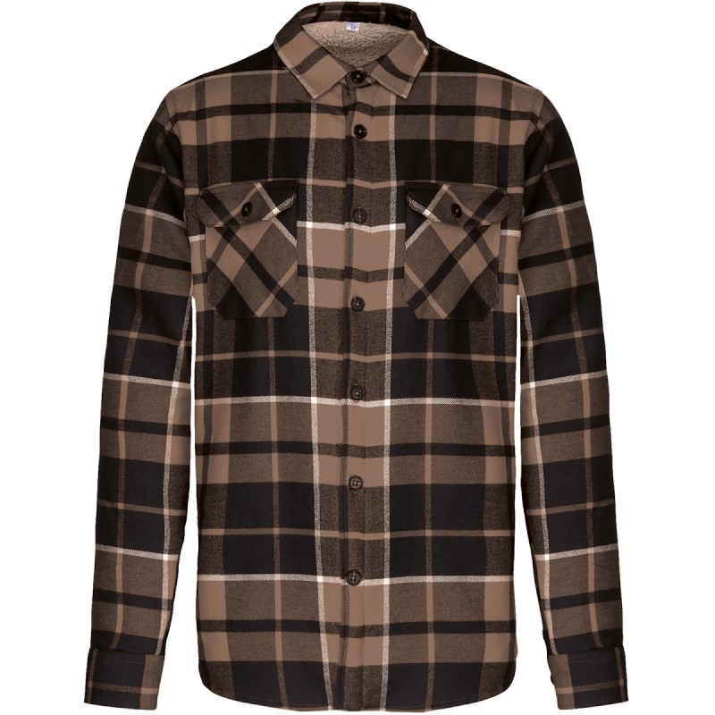 100% coton. Coton flanelle. Doublure corps sherpa 100% polyester. Manches doublées et matelassées 100% polyester taffetas. Surchemise très douce et ultra chaude. 2 poches poitrine avec rabat. Patte de boutonnage classique. Poignets boutonnés réglables. Bas arrondi. Pas d'étiquette de marque au col, uniquement une puce de taille pour faciliter la personnalisation.