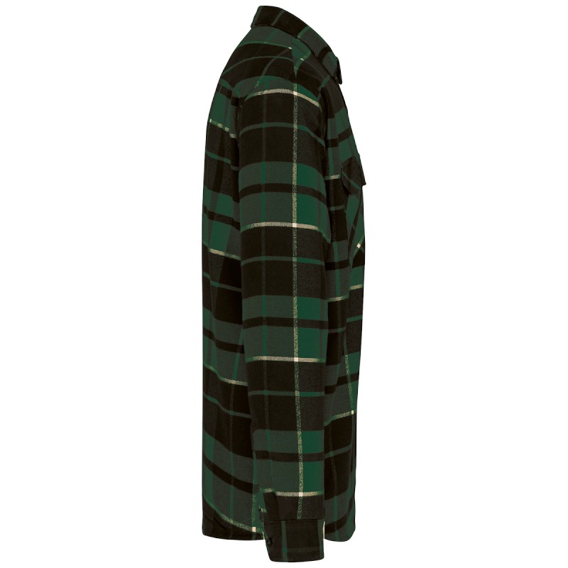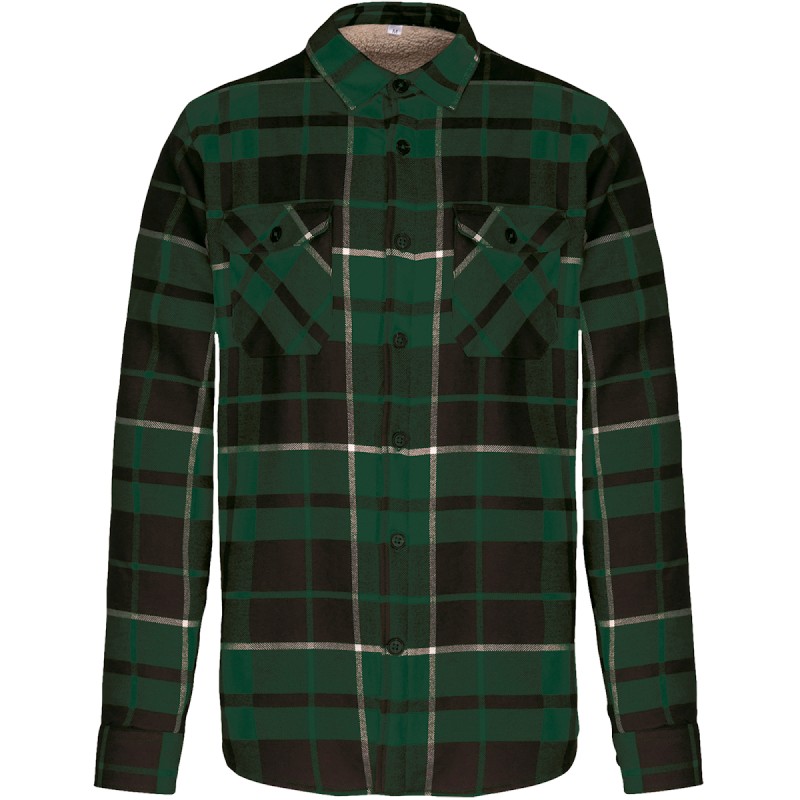 100% coton. Coton flanelle. Doublure corps sherpa 100% polyester. Manches doublées et matelassées 100% polyester taffetas. Surchemise très douce et ultra chaude. 2 poches poitrine avec rabat. Patte de boutonnage classique. Poignets boutonnés réglables. Bas arrondi. Pas d'étiquette de marque au col, uniquement une puce de taille pour faciliter la personnalisation.