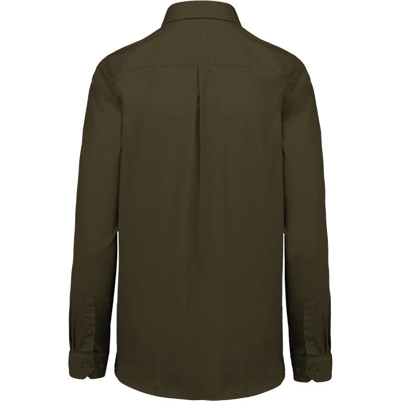 100% coton. Tissu sergé toucher peau de pêche. Boutons ton sur ton. Poche poitrine côté coeur. Intérieur pied de col et poignets contrastés en couleur Oxford silver. Dos avec 1 pli d'aisance et empiècement doublé. Finition coutures rabattues. Poignet réglable avec patte de manche capucin boutonnée. Bouton de rappel.