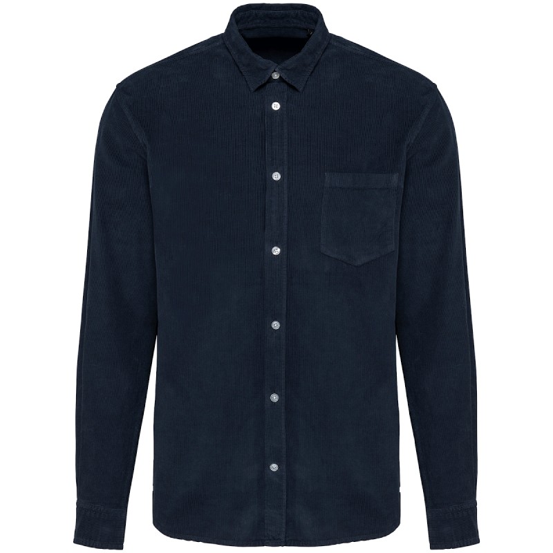100% coton. Tissu en velours côtelé. Coupe ajustée. Poche poitrine côté cœur avec coins renforcés. Patte de boutonnage rapportée avec boutons  blancs effet nacré sur toutes les couleurs. Poignets ajustables deux boutons à angles arrondies ainsi qu'une patte capucin avec bouton effet nacré. Empiècement doublé haut du dos. Bas de vêtement arrondi avec finition ourlet simple surpiqûre. Vêtement teint après montage, les couleurs peuvent légèrement varier d'une pièce à l'autre. Pas d'étiquette de marque au col, uniquement une puce de taille pour faciliter la personnalisation.