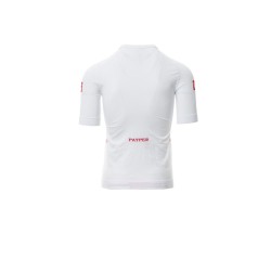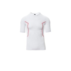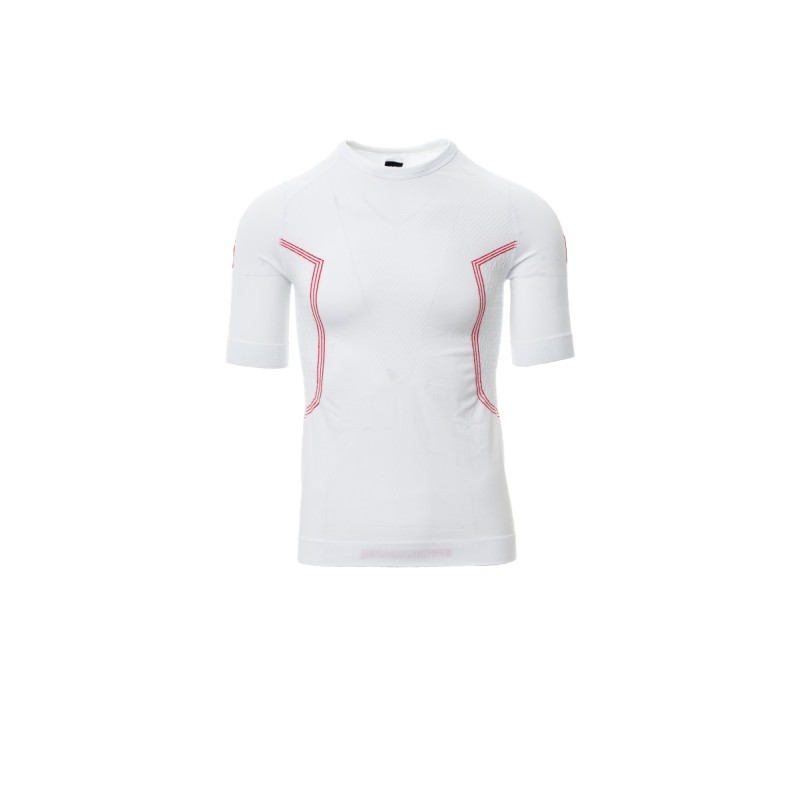 Tricot thermique homme, encolure ras le cou, manches courtes raglan. Tissu souple et élastique, avec tissages spéciaux sur la poitrine et le dos, motifs à hélice en relief sur les côtés pour garantir une transpiration correcte et une thermorégulation constante. Col, bas et ourlets des manches en bord côtes de la même matière, pour un meilleur confort. Structure tubulaire ergonomique pour s'adapter parfaitement à la physionomie du corps.