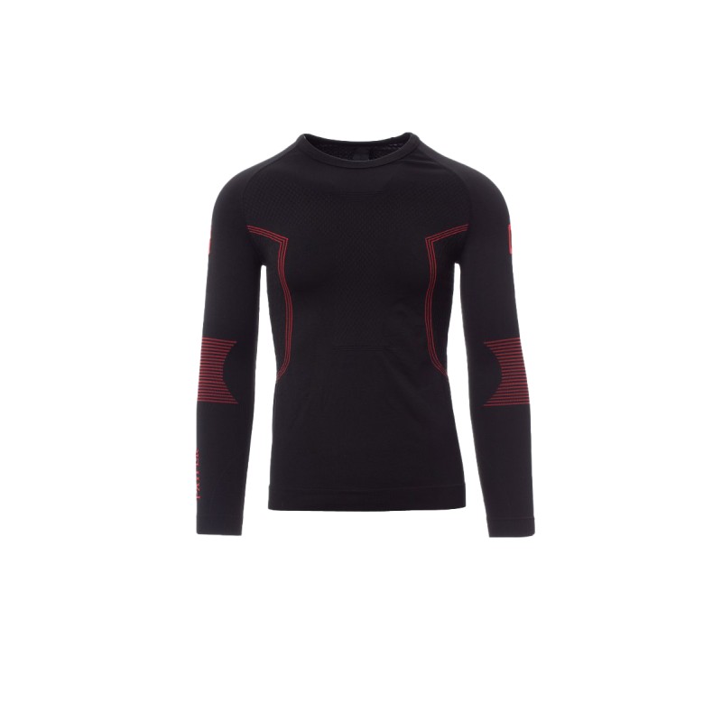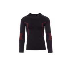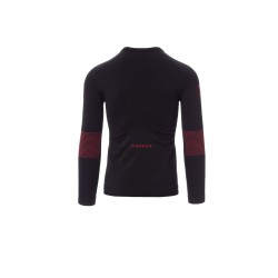 Tricot thermique homme, encolure ras le cou, manches longues raglan. Tissu souple et élastique, avec tissages spéciaux sur la poitrine et le dos, motifs à hélice en relief sur les côtés pour garantir une transpiration correcte et une thermorégulation constante. Col, bas et ourlets des manches en bord côtes de la même matière, pour un meilleur confort. Structure tubulaire ergonomique et nervures spéciales sur les coudes pour s'adapter parfaitement à la physionomie du corps.