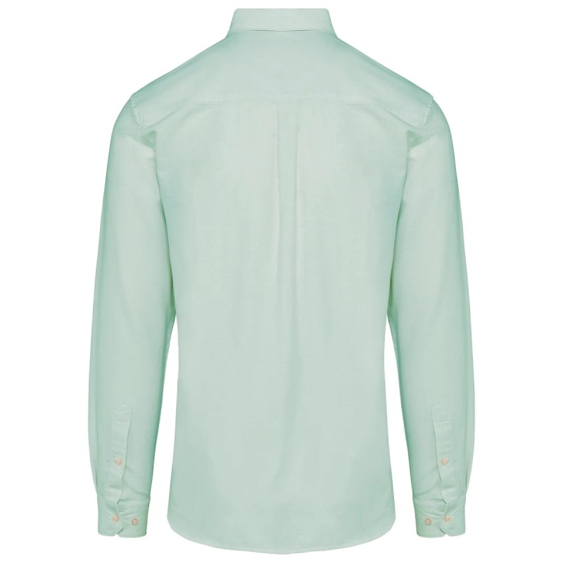 100% coton. Coton peigné. Tissu en Oxford. Coupe ajustée. Col chemise pointe de col boutonné. Bouton blanc effet nacré sur toutes les couleurs. Patte de boutonnage rapportée milieu devant. Empiècement dos doublé avec plis d’aisance. Manches longues avec poignets ajustables à angles arrondis avec patte de manche capucin boutonnée. Pas d'étiquette de marque uniquement une puce de taille Tear Away pour faciliter la personnalisation. Fabriqué au Portugal.