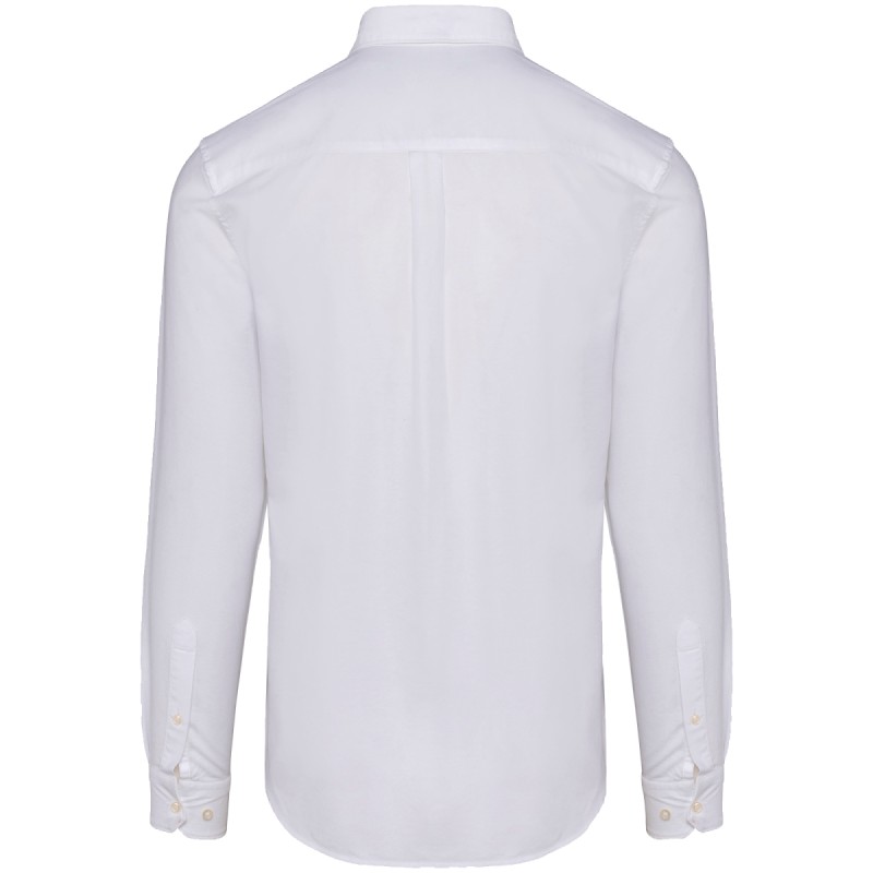 100% coton. Coton peigné. Tissu en Oxford. Coupe ajustée. Col chemise pointe de col boutonné. Bouton blanc effet nacré sur toutes les couleurs. Patte de boutonnage rapportée milieu devant. Empiècement dos doublé avec plis d’aisance. Manches longues avec poignets ajustables à angles arrondis avec patte de manche capucin boutonnée. Pas d'étiquette de marque uniquement une puce de taille Tear Away pour faciliter la personnalisation. Fabriqué au Portugal.