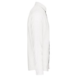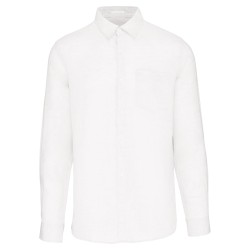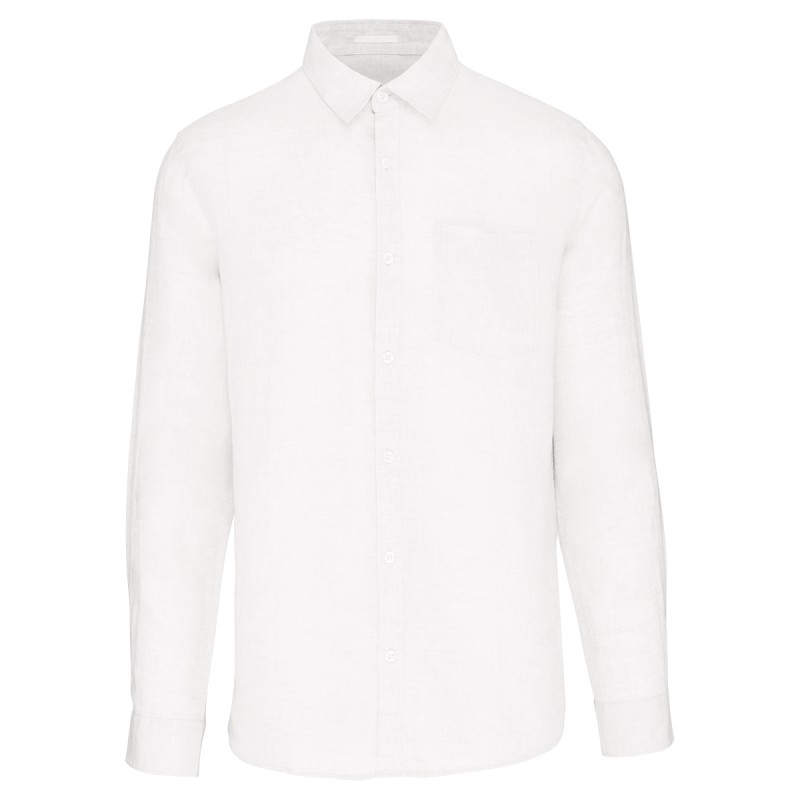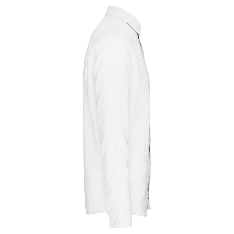 100% lin. Tissé. Coupe ajustée. Patte de boutonnage classique avec boutons effet nacré. Poche poitrine côté coeur. Empiècement dos avec plis d'aisance. Poignet boutonné avec patte capucin. Galon contrasté. Intérieur pied de col Natural. La couleur Linen n'a pas subi de teinture, et peut varier d'un produit à l'autre.