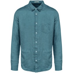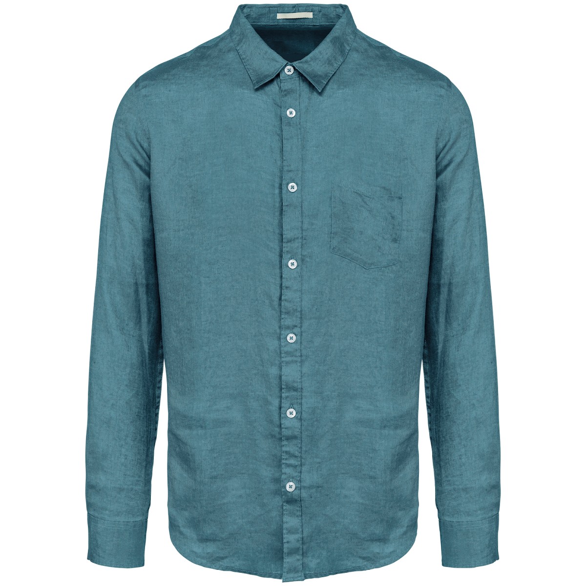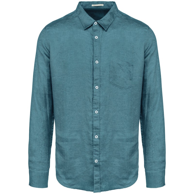 100% lin. Tissé. Coupe ajustée. Patte de boutonnage classique avec boutons effet nacré. Poche poitrine côté coeur. Empiècement dos avec plis d'aisance. Poignet boutonné avec patte capucin. Galon contrasté. Intérieur pied de col Natural. La couleur Linen n'a pas subi de teinture, et peut varier d'un produit à l'autre.