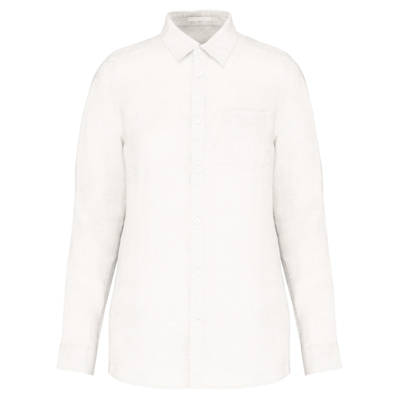 100% lin. Tissé. Coupe ajustée. Patte de boutonnage classique avec boutons effet nacré. Poche poitrine côté coeur. Empiècement dos avec plis d'aisance. Poignet boutonné avec patte capucin. Galon contrasté. Intérieur pied de col Natural. *La couleur Linen n'a pas subi de teinture, et peut varier d'un produit à l'autre.