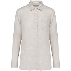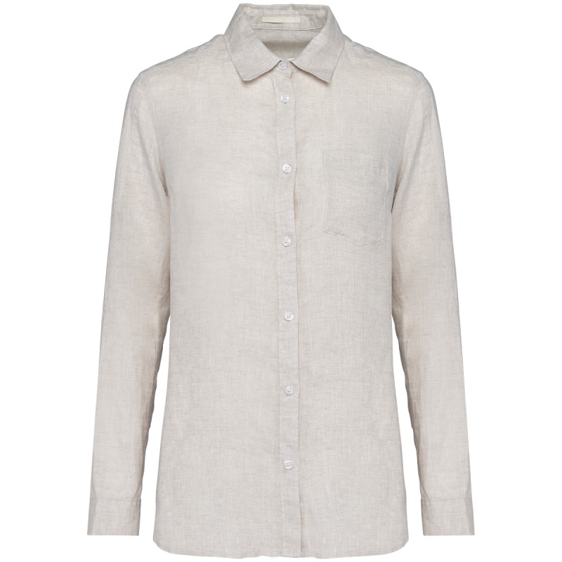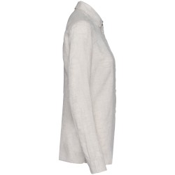 100% lin. Tissé. Coupe ajustée. Patte de boutonnage classique avec boutons effet nacré. Poche poitrine côté coeur. Empiècement dos avec plis d'aisance. Poignet boutonné avec patte capucin. Galon contrasté. Intérieur pied de col Natural. *La couleur Linen n'a pas subi de teinture, et peut varier d'un produit à l'autre.