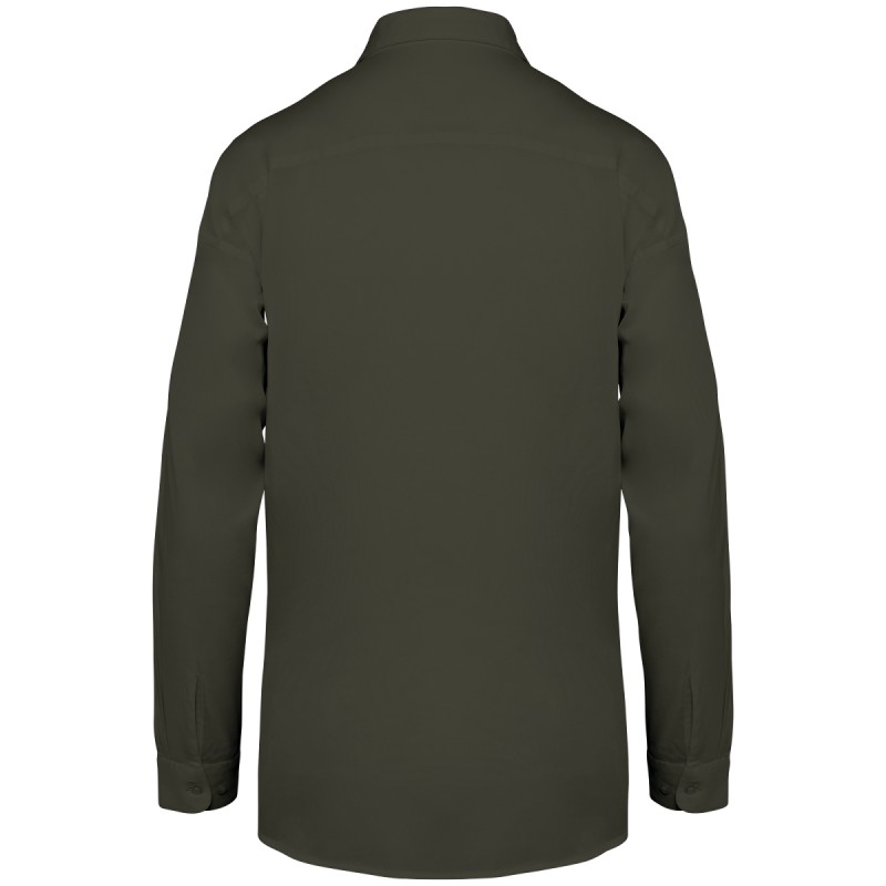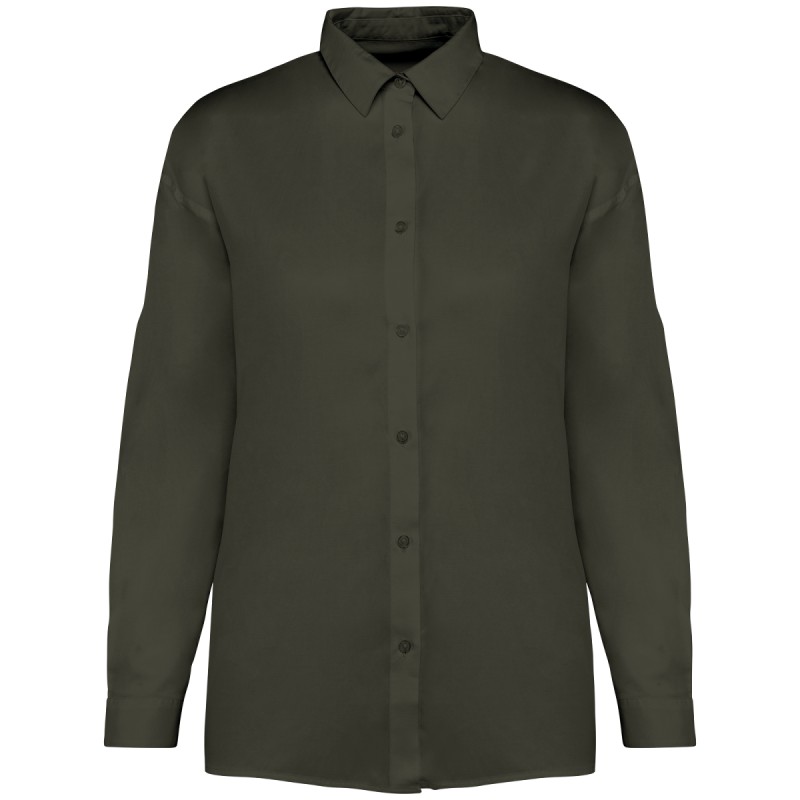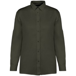 60% Lyocell TENCEL™* / 40% coton biologique. Coupe loose légèrement évasée. Lavé aux enzymes. Boutons en plastique recyclé ton sur ton. Manches longues deux plis. Empiècement au dos. Deux plis d’aisance au dos. Poignets boutonnés avec fentes. Vêtement lavé après montage : les couleurs peuvent légèrement varier. Ce produit est susceptible de déteindre au contact avec des surfaces ou vêtements clairs. * TENCEL™ est une marque de Lenzing AG.