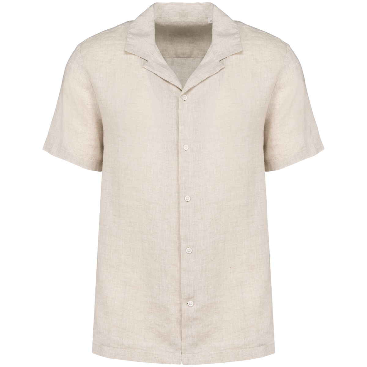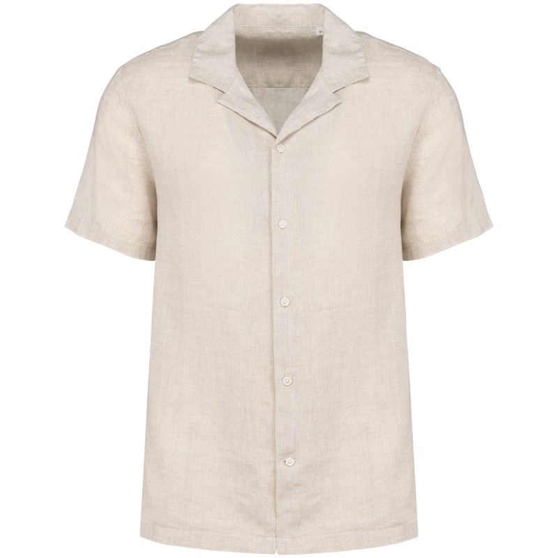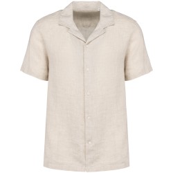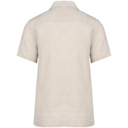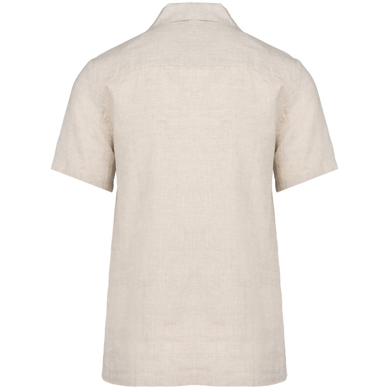 100% lin. Tissé. Coupe ajustée. Col bowling. Empiècement dos doublé. Ourlet simple surpiqûre bas de manches et de vêtement. Patte de boutonnage avec boutons contrastés effet nacré en plastique recyclé, avec une parmenture en finition intérieur. Vêtement lavé après montage : les couleurs peuvent varier d'un produit à l'autre.