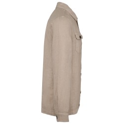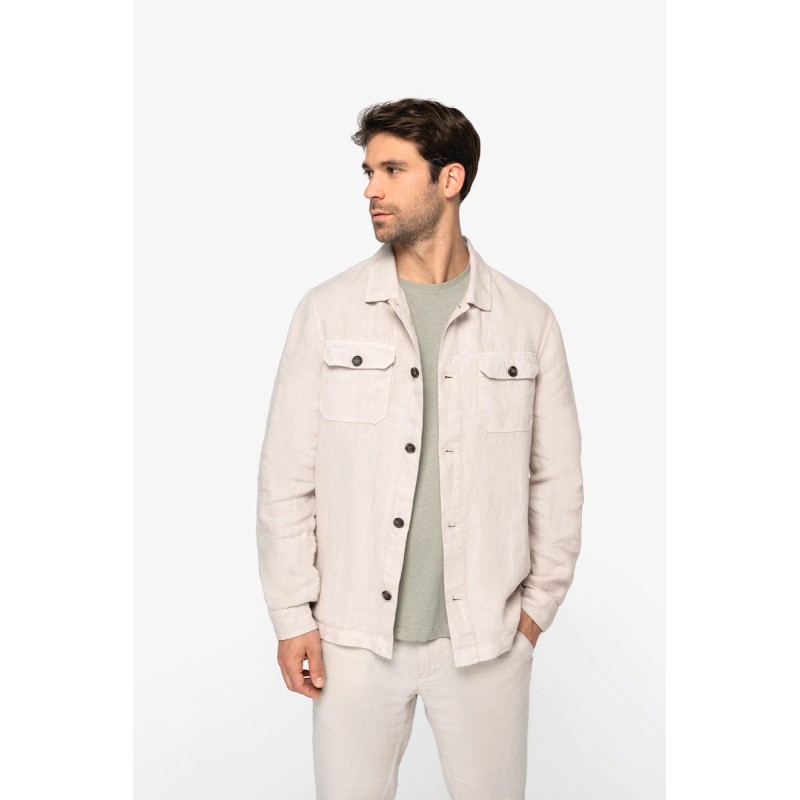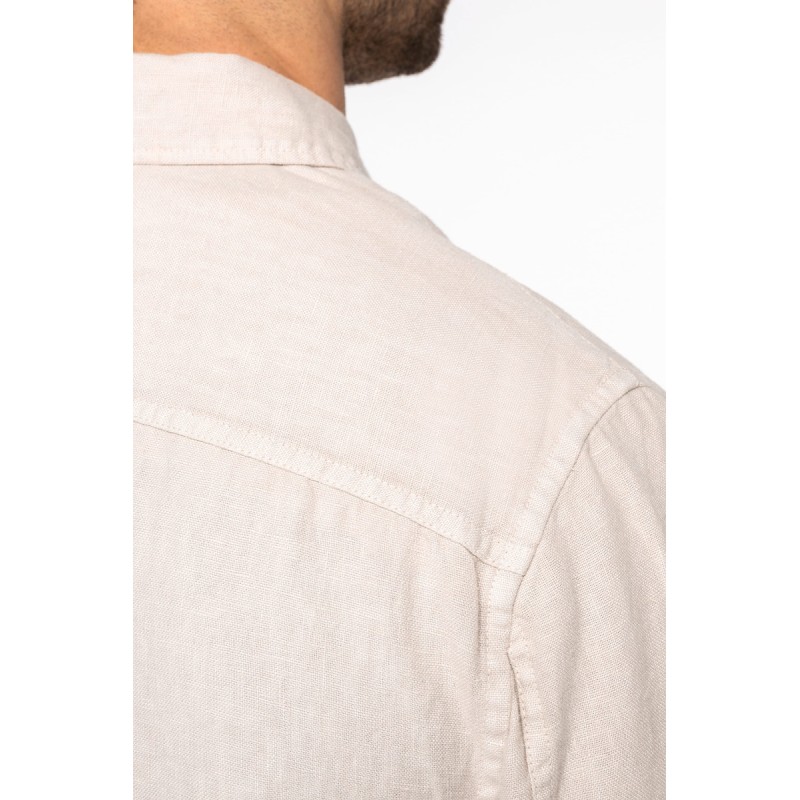 100% lin. Tissé. Coupe ajustée. Aspect délavé. Patte de boutonnage avec boutons contrastés en plastique recyclé effet corne. Bas de manches poignet avec fente et bouton. Col avec pied de col fantaisie. Deux poches plaquées avec rabat et bouton. Bride de suspension intérieure en tissu principal. Empiècement dos. Double surpiqûres sur les côtés, empiècement dos et manches. Ourlet simple surpiqûre bas de vêtement. Doublure intérieure volante avec patch de personnalisation en matière principale. Vêtement teint en pièce après montage : les couleurs peuvent légèrement varier d'un produit à un autre. Ce produit est susceptible de déteindre au contact avec des surfaces ou vêtements clairs.