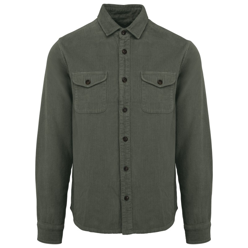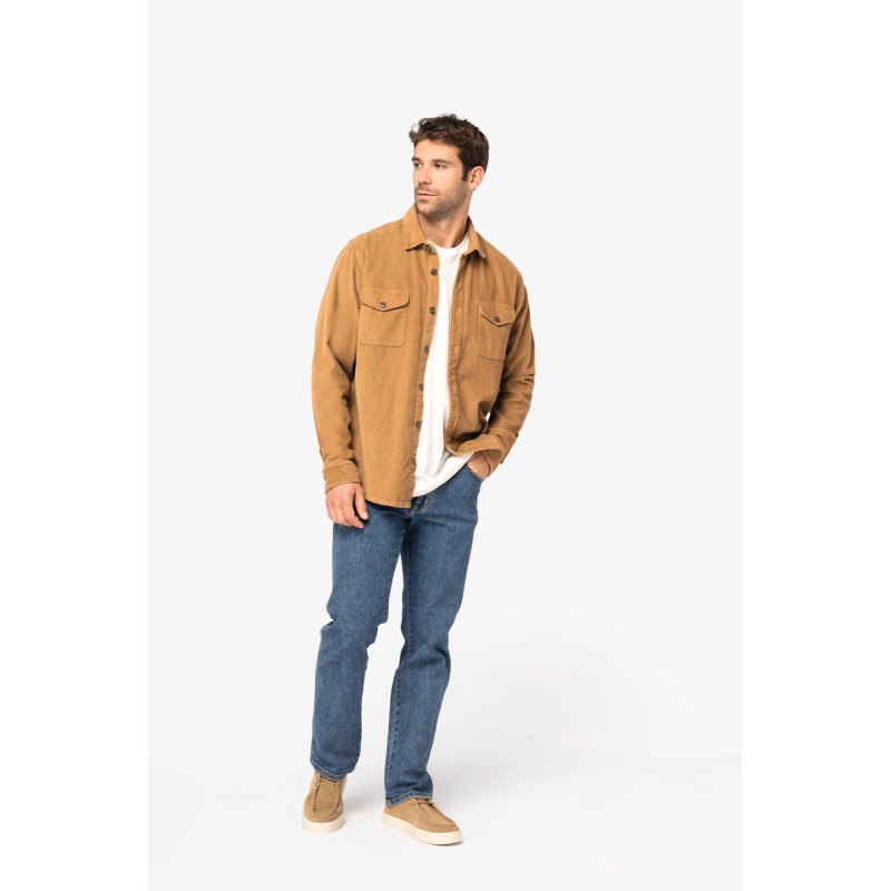 100% coton biologique. Tissé. Coupe ajustée. Aspect délavé. Tissu en velours côtelé. Patte de boutonnage rapportée avec boutons contrastés effet corne en plastique recyclé. Poignet boutonné avec patte capucin. Col avec pied de col. Poches plaquées avec rabats et boutons. Bride de suspension intérieure en tissu principal. Surchemise cintrée avec deux pinces. Empiècement au dos. Doublure intérieure volante en matière principale pour faciliter la personnalisation. Vêtement teint en pièce après montage: les couleurs peuvent légèrement varier d'un produit à un autre. Ce produit est susceptible de déteindre au contact avec des surfaces ou vêtements clairs.