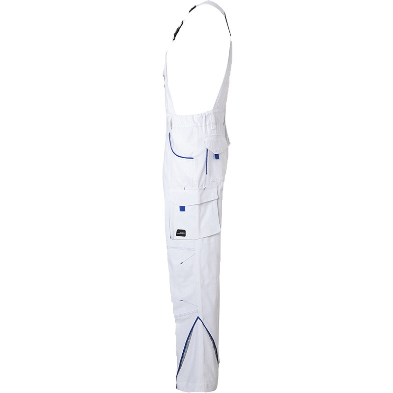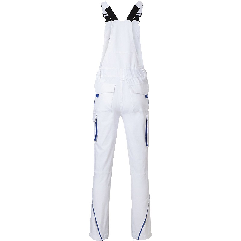 Salopette Unisexe Grande taille Gamme color Coupe droite Longueur de jambes : standard 2 poches latérales et 2 poches à l'arrière 2 poches cuisse Poche bavette zippée Taille élastiquée avec passant pour ceinture Fermeture zippée Renforts triples surpiqûres Éléments réfléchissants à l'avant et à l'arrière 97% coton 3% élasthanne 250 gr/m² Lavable à 60°C et adapté au sèche-linge
