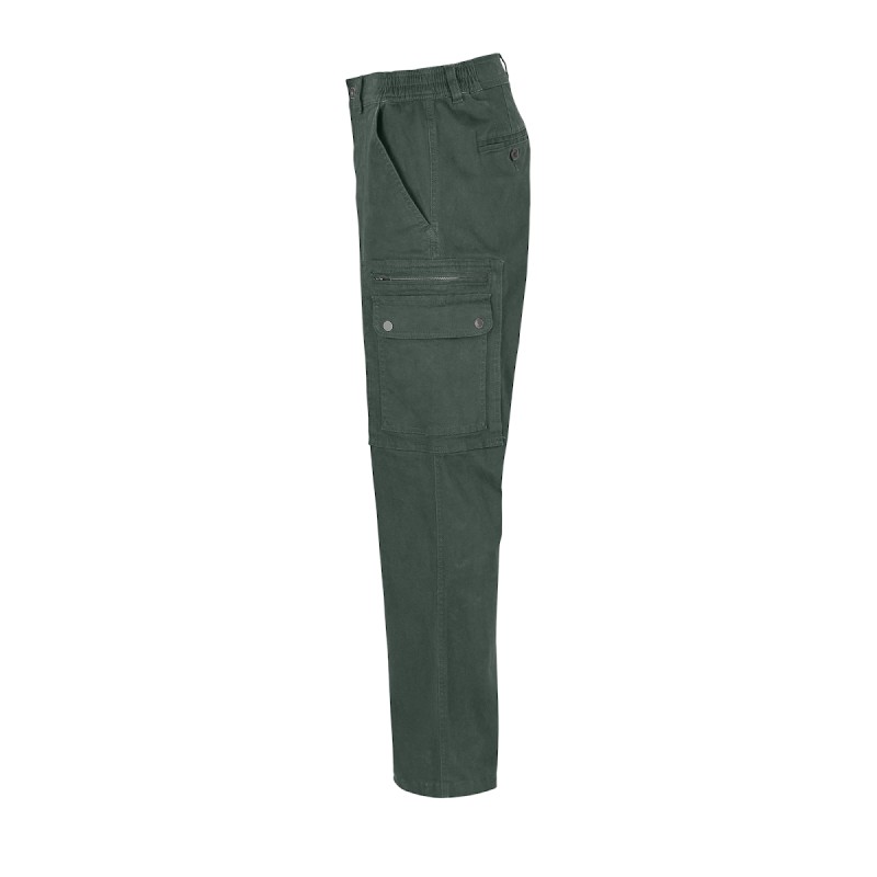 1 poche plaquée avec fermeture éclair sur la jambe gauche
