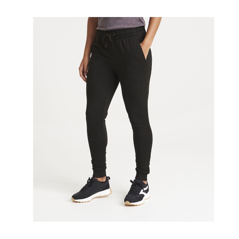 Coupe moderne cintrée. Bas de pantalon en bords côte. 2 poches avant.