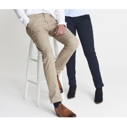 Coupe ajustée. Pantalon stretch touché peau de pêche. Fermeture braguette et bouton.