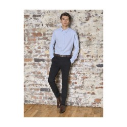 Coupe ajustée. Pantalon stretch touché peau de pêche. Fermeture braguette et bouton.