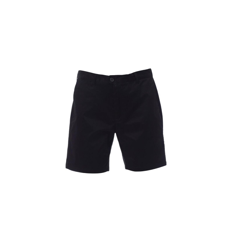 Bermuda classique pour homme, fermeture par zip et bouton, taille avec passants, deux poches cavalières sur le devant et deux poches arrière passepoilées avec bouton.