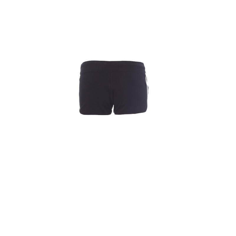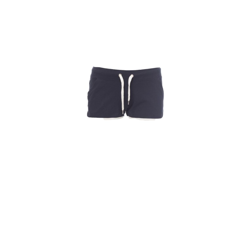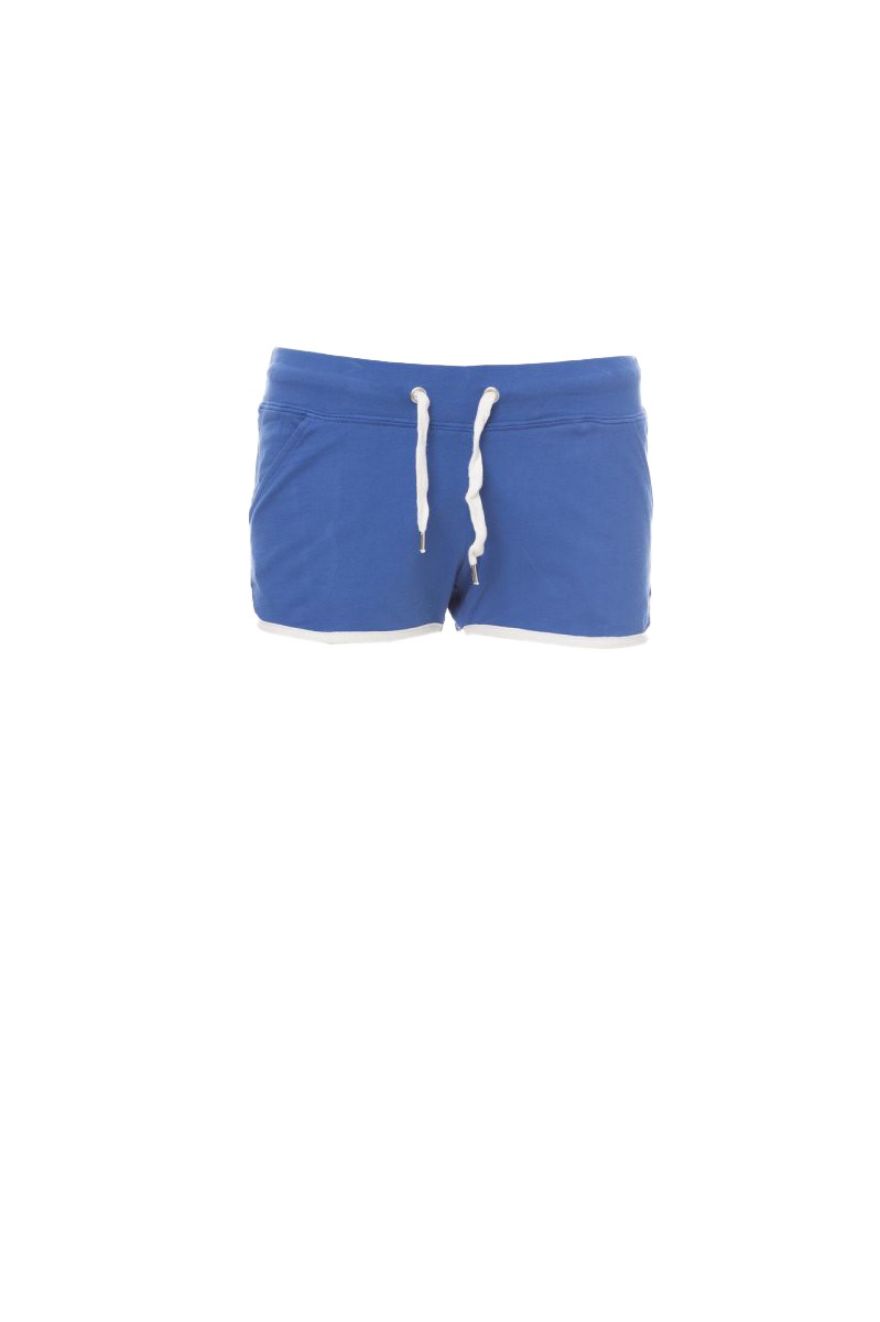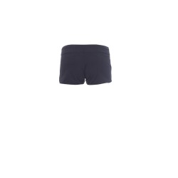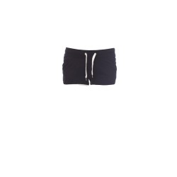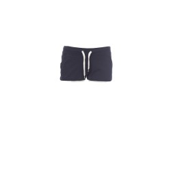 Bermuda femme en sweat avec élastique et cordon coulissé à la taille, deux poches sur le devant et liseré de finition en contraste.