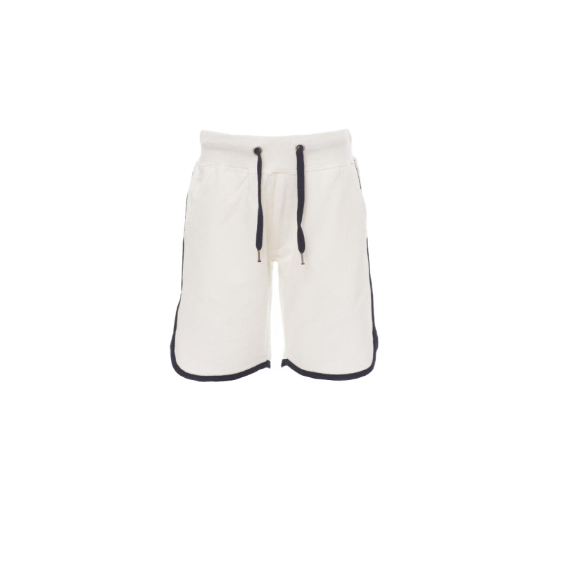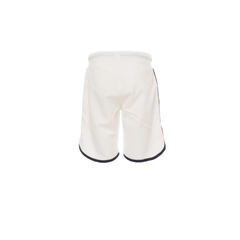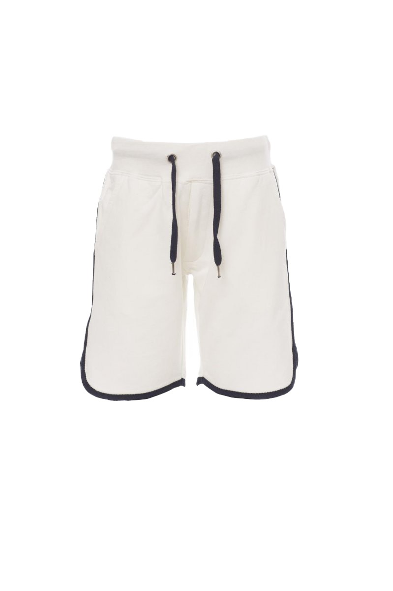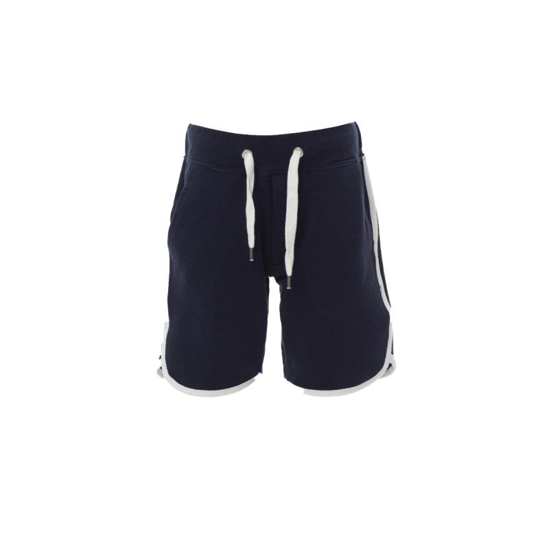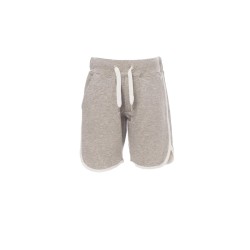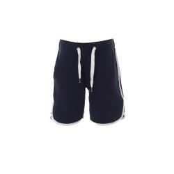 Bermuda enfant en sweat avec élastique et cordon coulissé à la taille, zip avec patte, deux poches sur le devant et liseré de finition en contraste.