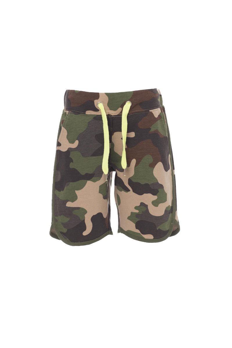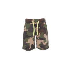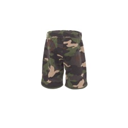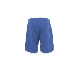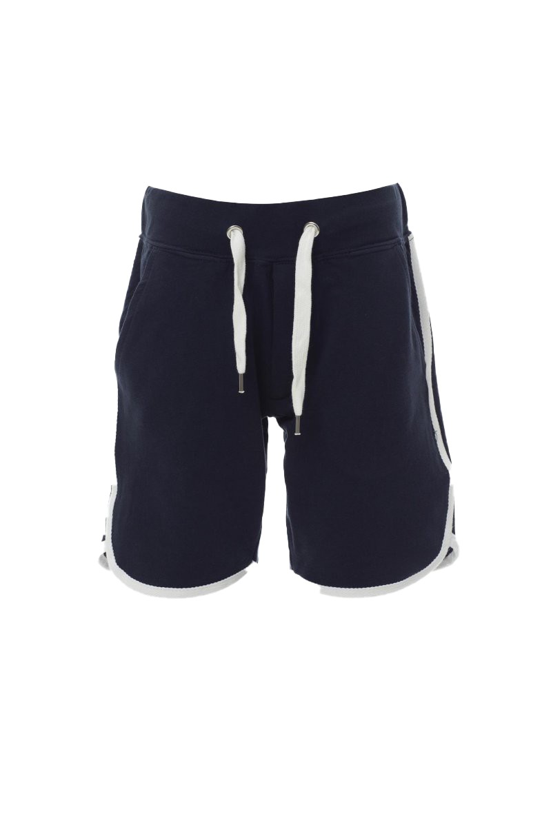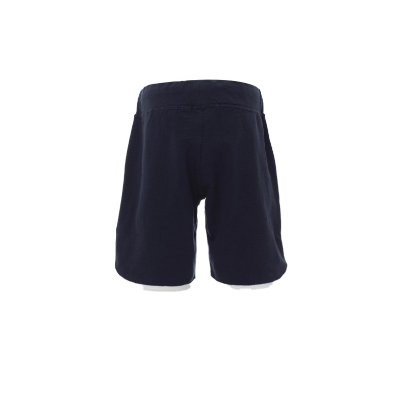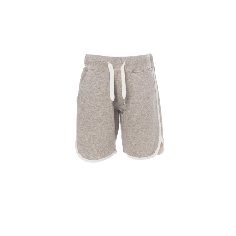 Bermuda enfant en sweat avec élastique et cordon coulissé à la taille, zip avec patte, deux poches sur le devant et liseré de finition en contraste.