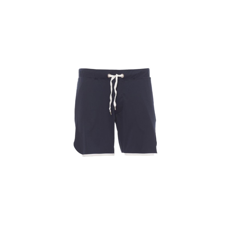 Bermuda sportif unisexe avec cordon coulissé à la taille, rabat zippé, deux poches latérales et profil des bordures en contraste.