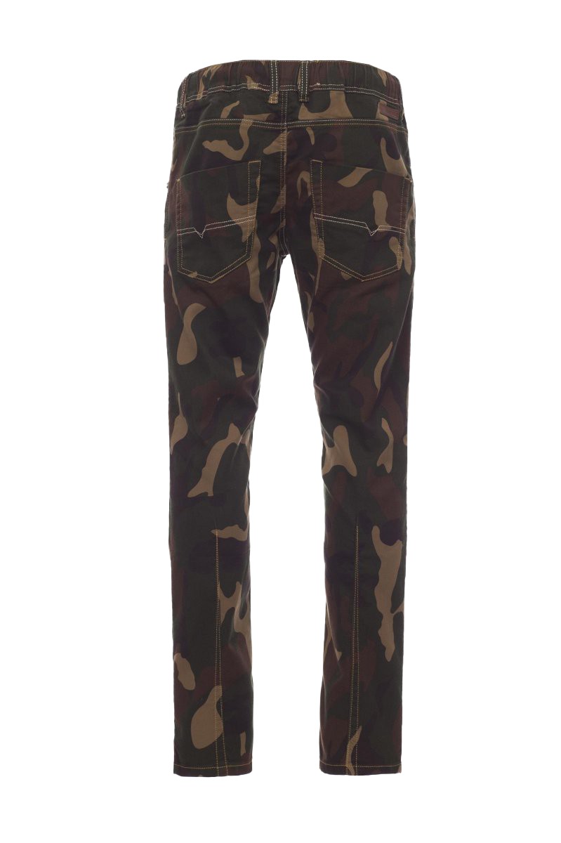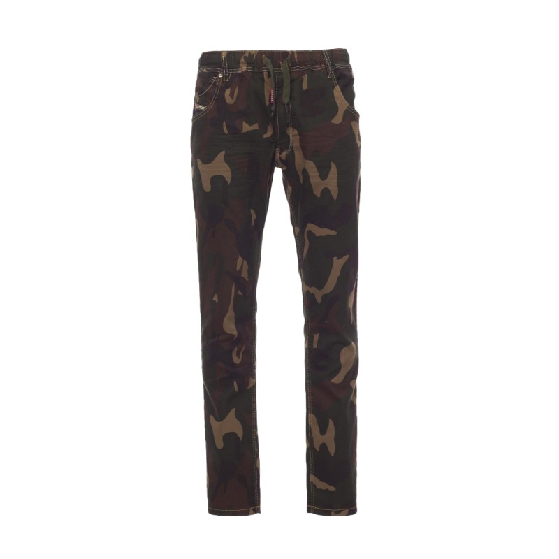 Pantalon multi-saison pour homme, coupe jeans à cinq poches, élastique, cordon coulissé et passants à la taille, fermeture par zip en métal, effet usé, coutures en gros fil contrasté, doubles coutures sur intérieur des jambes, jambes SLIM, clous et patch en cuir véritable. Poids du tissu: 10,50oz/yd².