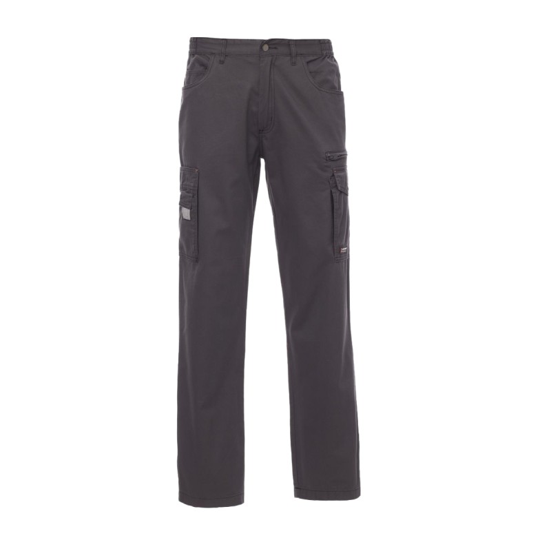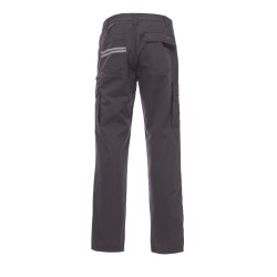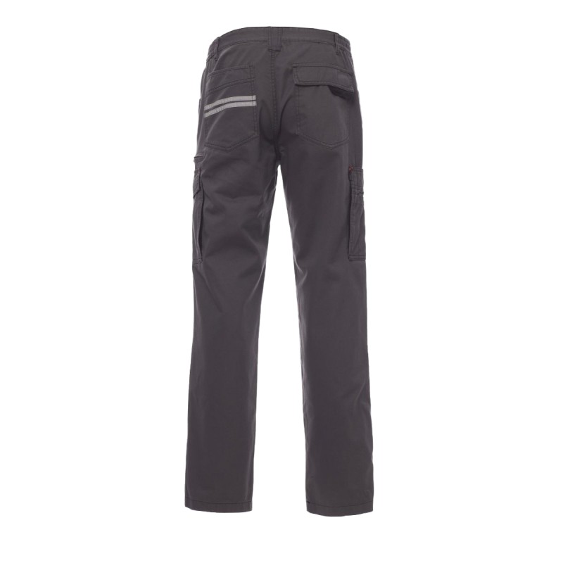 Pantalon multi-saison unisexe avec élastiques latéraux et passants à la taille, fermeture par zip et bouton en métal, trois poches avant façon jeans, une poche latérale LOCK SYSTEM et une poche avec zip, une poche multifonction, deux poches arrière une ouverte et une avec rabat et velcro. Inserts et surpiqûres en contraste, bandes réfléchissantes sur poche arrière.