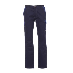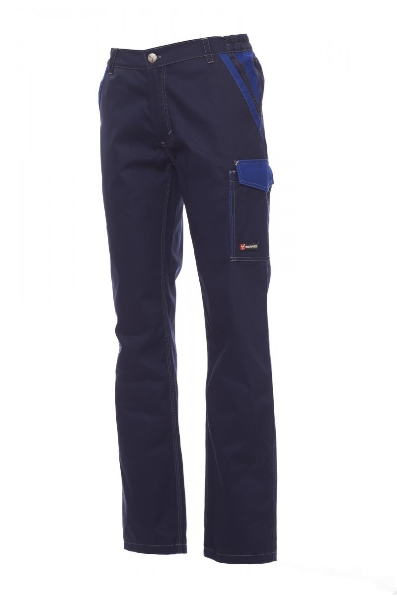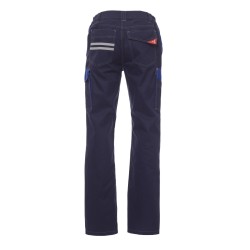 Pantalon multi-saison unisexe avec élastiques latéraux et passants à la taille, fermeture par zip et bouton en métal, deux poches de coupe classique sur le devant et une poche avec zip, une poche latérale LOCK SYSTEM, une double poche porte-mètre côté gauche, deux poches arrière une ouverte et une avec rabat et velcro. Inserts et surpiqûres en contraste, bandes réfléchissantes sur poche arrière, triple couture intérieur jambes.