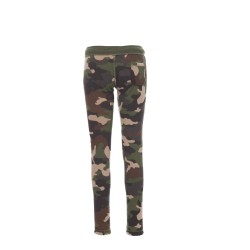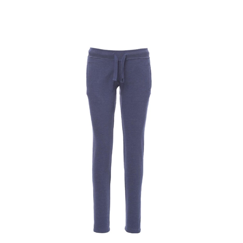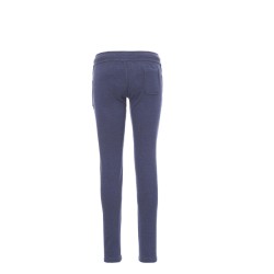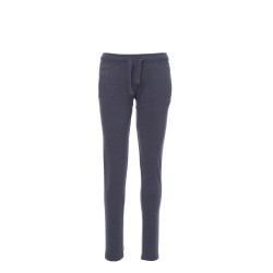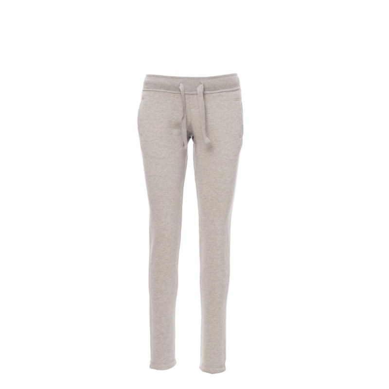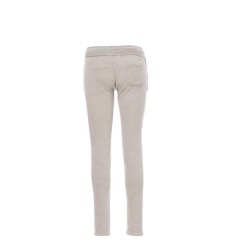 Pantalon femme en sweat, tour de taille élastique avec coulisse et cordon teinte assortie, bord-côte à l'entrejambe, deux poches sur le devant et une petite poche derrière. Coutures renforcées, finitions d'inspiration vintage, étiquette intérieure personnalisable.